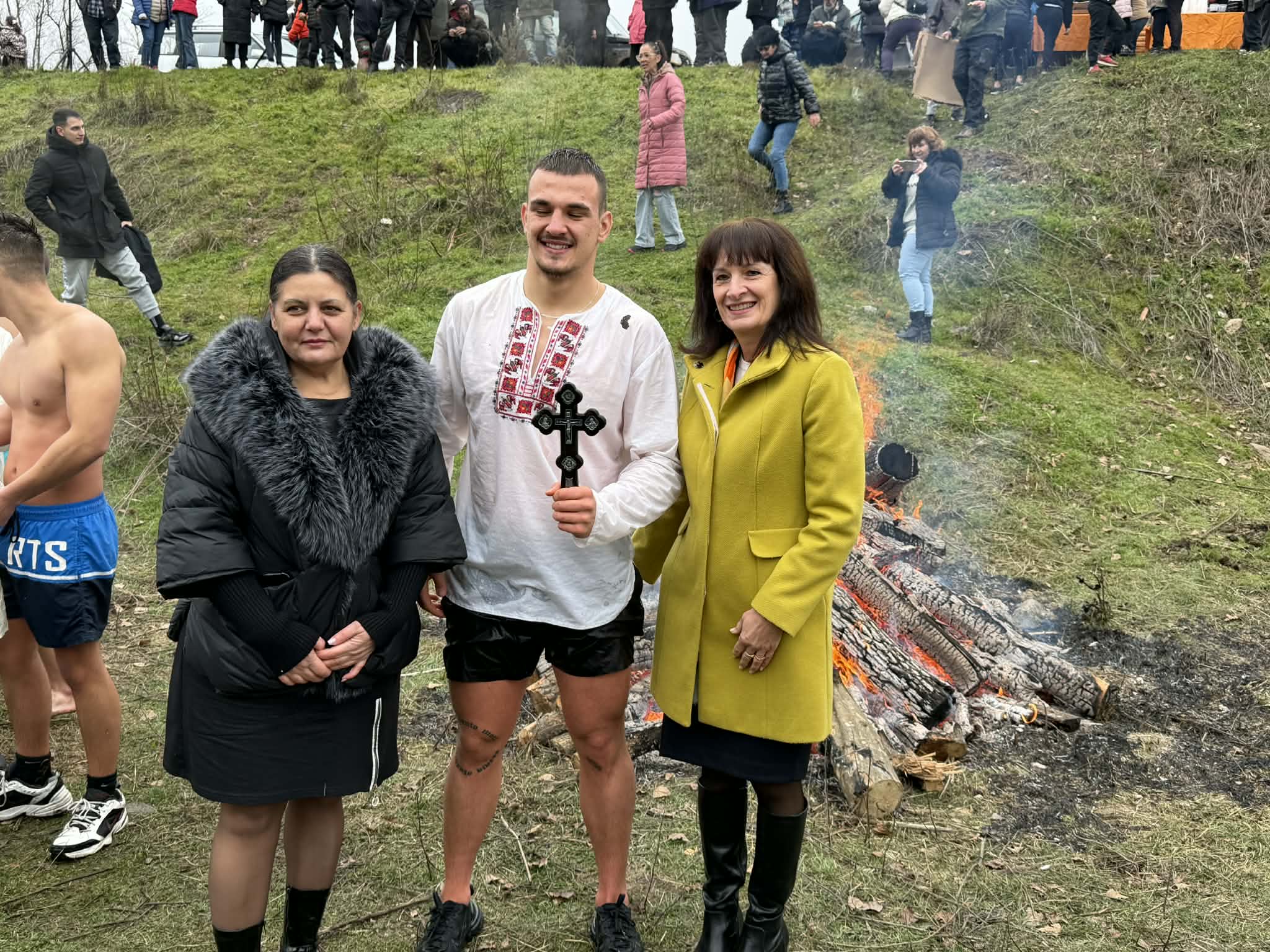 Заместник областният управител Нели Читинова бе сред гостите днес на церемонията по хвърлянето на светия кръст на Богоявление в Угърчин. Извади го от студените води на река Каменица 18-годишният Роселин Бачевски, когото Читинова поздрави за куража. В надпреварата участваха 13 смелчаци. Ритуалът е традиция за Угърчин, организира го Общината. Спечелилият тази година скача за пети път и каза, че ще продължи да го прави – за здраве...
